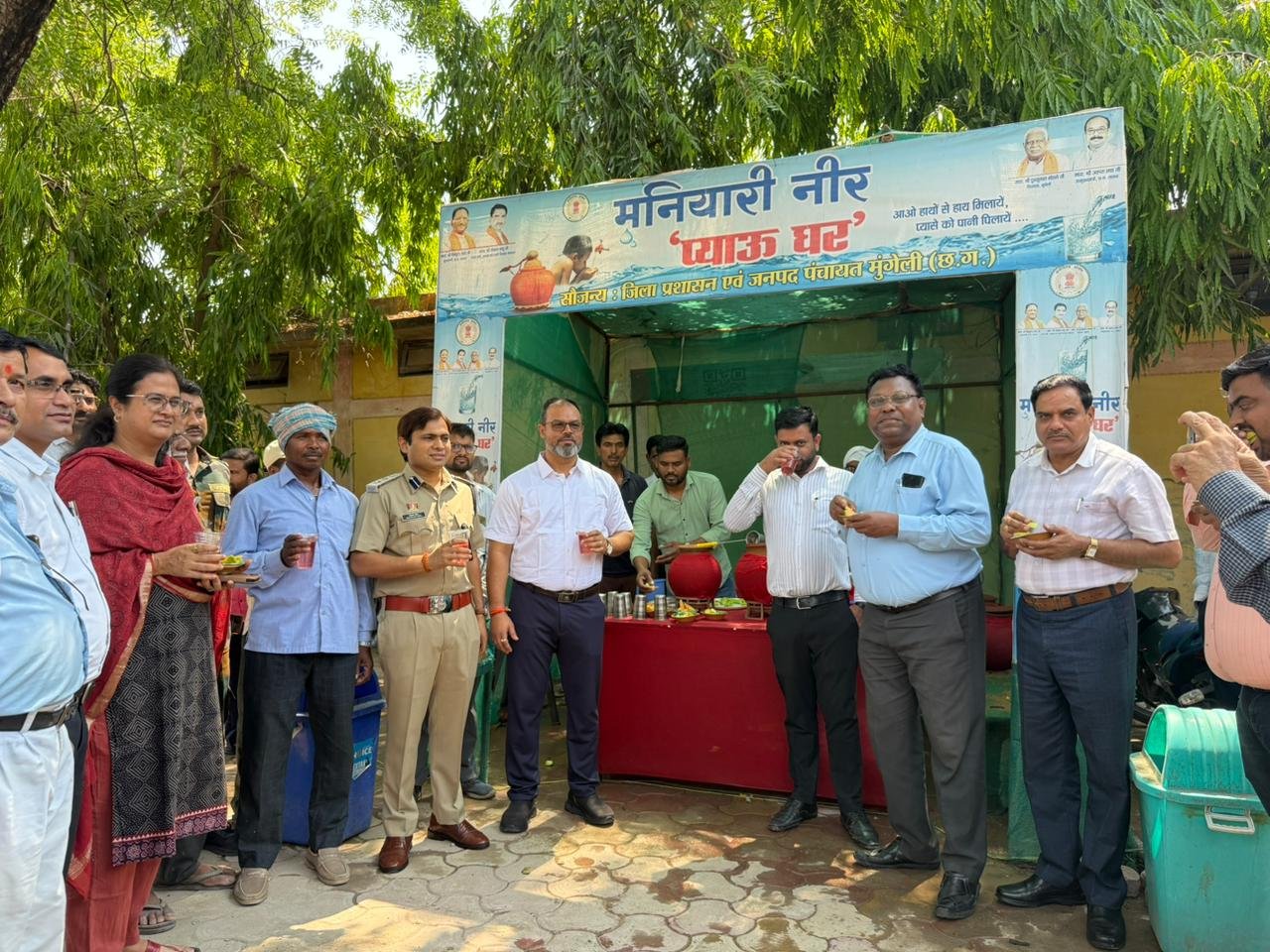 मुंगेली, 28 अप्रैल 2026// गर्मी से राहत प्रदान करने के उद्देश्य से जिला प्रशासन मुंगेली द्वारा जनहित में मनियारी नीर की थीम पर शीतल पेयजल उपलब्ध कराने की सराहनीय पहल की गई है। WhatsApp Image 2026 04 28 at 19.03.09 1कलेक्टर श्री कुन्दन कुमार के निर्देशानुसार विभिन्न स्थलों एवं प्रमुख चौक-चौराहों पर मनियारी नीर प्याऊ घर स्थापित किए गए हैं। साथ ही मवेशियों, पशु-पक्षियों के लिए भी पानी की व्यवस्था की गई है। इसी क्रम में जिला कलेक्टोरेट परिसर में आयोजित जनदर्शन कार्यक्रम के दौरान आने वाले नागरिकों के लिए छाया, स्वच्छ पेयजल के साथ शीतल शरबत एवं मौसमी फलों की विशेष व्यवस्था की गई है। कलेक्टर एवं एसपी श्री भोजराम पटेल ने आमजनों से मनियारी नीर स्टॉल पर शीतल पेयजल का लाभ उठाने की अपील की है।WhatsApp Image 2026 04 28 at 19.03.09