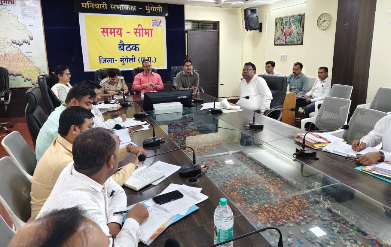 कलेक्टर ने राजस्व प्रकरणों, विशेषकर नक्शा बटांकन में प्रगति लाने, लोक सेवा गारंटी अधिनियम अंतर्गत सेवाएं समयबद्ध उपलब्ध कराने तथा शासन की महत्वाकांक्षी योजनाओं में शत-प्रतिशत प्रगति सुनिश्चित करने के निर्देश दिए। बैठक में वरिष्ठ पुलिस अधीक्षक श्री भोजराम पटेल, अतिरिक्त कलेक्टर श्रीमती निष्ठा पाण्डेय तिवारी, जिला पंचायत सीईओ श्री प्रभाकर पाण्डेय, एसडीएम मुंगेली श्री अजय शतरंज, एसडीएम लोरमी श्री अजीत पुजारी सहित विभिन्न विभागों के जिला स्तरीय अधिकारी उपस्थित रहे।