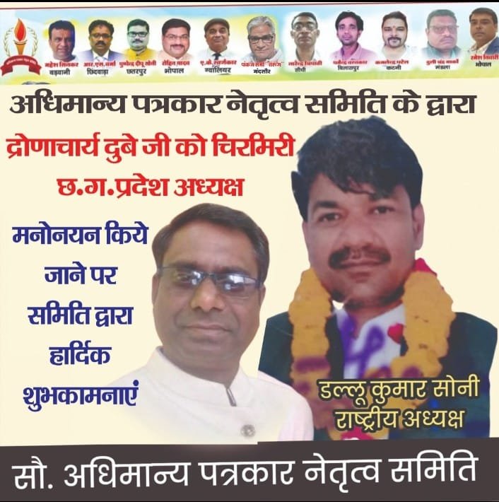 देश के “चौथे स्तंभ” कहे जाने वाली पत्रकारिता को द्रोणाचार्य दुबे जैसे व्यक्तित्व का मिलना किसी सम्मान से कम नहीं। उनकी लेखनी हमेशा सच का साथ देती है। उनकी नज़र हर उस अच्छाई–बुराई पर रहती है जिसे समाज जानना चाहता है। उनके नेतृत्व में समिति न सिर्फ और सशक्त होगी, बल्कि पत्रकारों की आवाज़ को भी राष्ट्रीय स्तर पर मजबूती मिलेगी।