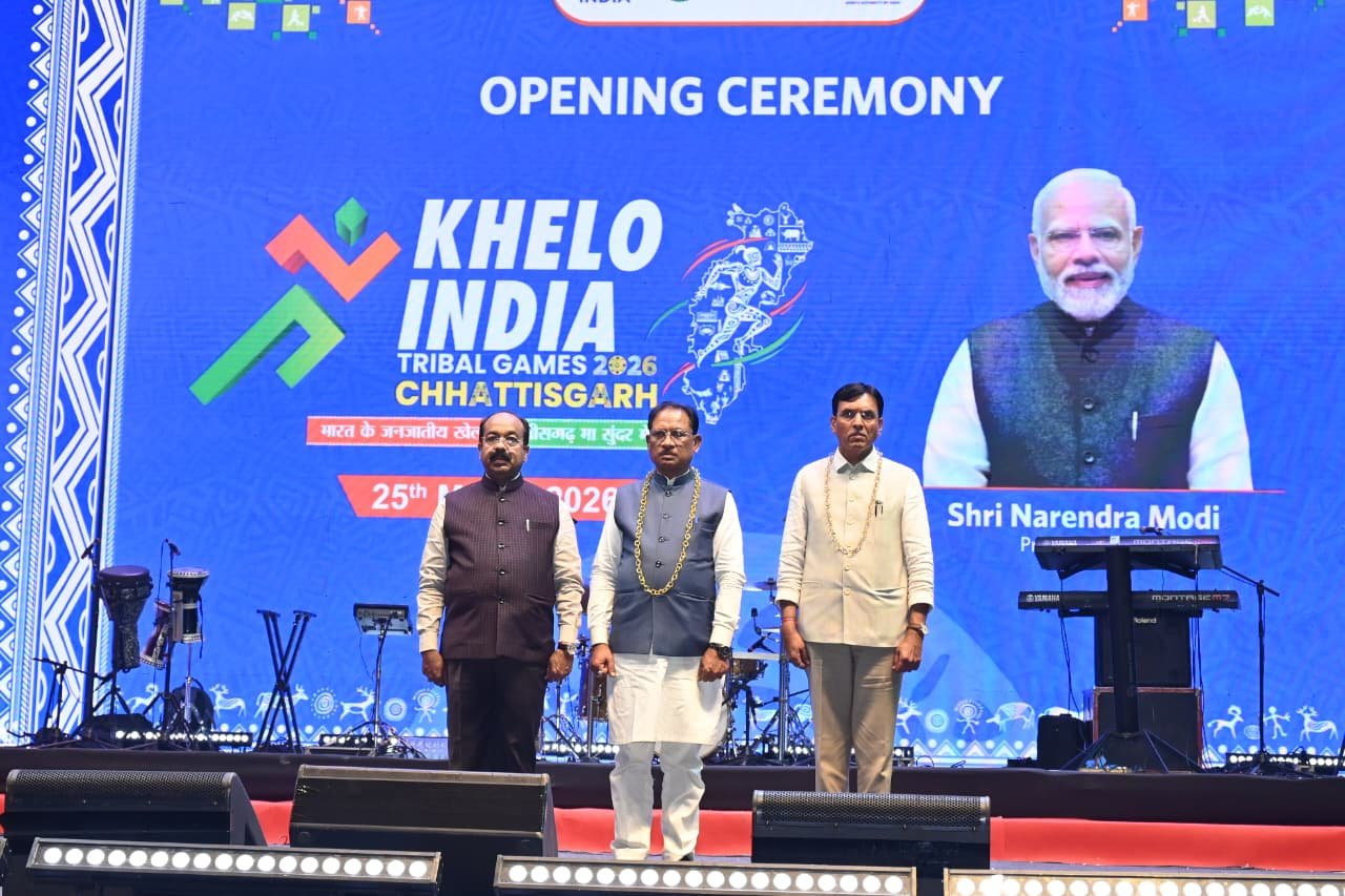 छत्तीसगढ़ की पावन धरा आज एक ऐतिहासिक गौरव की साक्षी बनी, जब राजधानी रायपुर के साइंस कॉलेज मैदान में मुख्यमंत्री श्री विष्णु देव साय ने देश के प्रथम ‘खेलो इंडिया ट्राइबल गेम्स 2026’ का भव्य शंखनाद किया। इस गरिमामयी अवसर पर केंद्रीय युवा मामले एवं खेल मंत्री डॉ. मनसुख मांडविया मुख्य अतिथि के रूप में उपस्थित रहे।