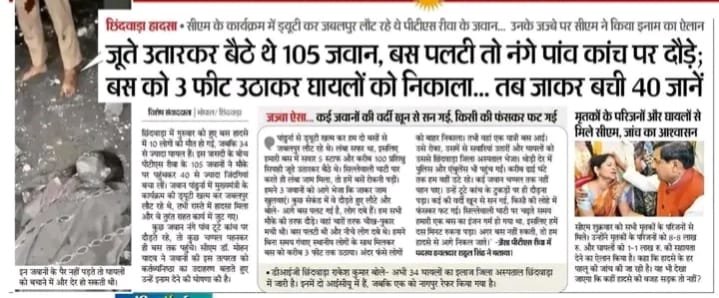 Home - क्षेत्रीय खबर - छिंदवाड़ा बस दुर्घटना : पुलिस नव आरक्षकों एवं स्टाफ द्वारा साहस, समर्पण और कर्तव्यनिष्ठा की प्रेरक मिसाल..