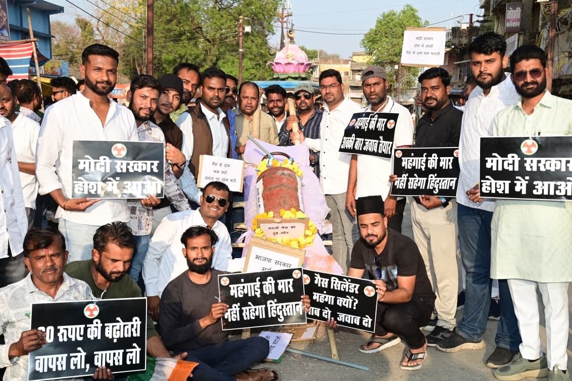 जबलपुर आज युवा कांग्रेस द्वारा भाजपा की केंद्र सरकार द्वारा गैस दाम में वृद्धि के विरोध में गैस सिलेंडर का प्रतिकात्मक आर्थिक जुलूस निकाला गया आज दो सैकड़ा से भी अधिक युवक कांग्रेस कार्यकर्ता महंगाई कम करो महिलाओं पर अत्याचार बंद करो गैस सिलेंडर के दाम कम करो के नारे के साथ युवक कांग्रेस पश्चिम विधानसभा अध्यक्ष एड नितिन सिंह व युवा कांग्रेस नेता पंडित सचिन वाजपेई के नेतृत्व में आनंद कुंज से गढ़ा बाजार तक गैस सिलेंडर का प्रतीकात्मक का आर्थिक जुलूस निकाला गया एड नितिन सिंह ने जानकारी देते हुए बताया कि महंगाई और भाजपा की केंद्र सरकार की गलत नीतियों ने आमजन का जीवन प्रभावित किया है इसके लिए युवा कांग्रेस जनता के हितों की लड़ाई लड़ता रहेगा पंडित सचिन वाजपेई ने जानकारी दी कि यह आंदोलन उन पीड़ित परिवारों की आवाज है जो आज के इस दौर में महंगाई से पीड़ित है