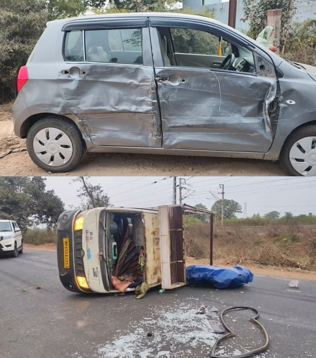 जैन पेट्रोल पंप के पास भीषण सड़क हादसा, बेकाबू पिकअप ने कार सवार दंपति को मारी टक्कर