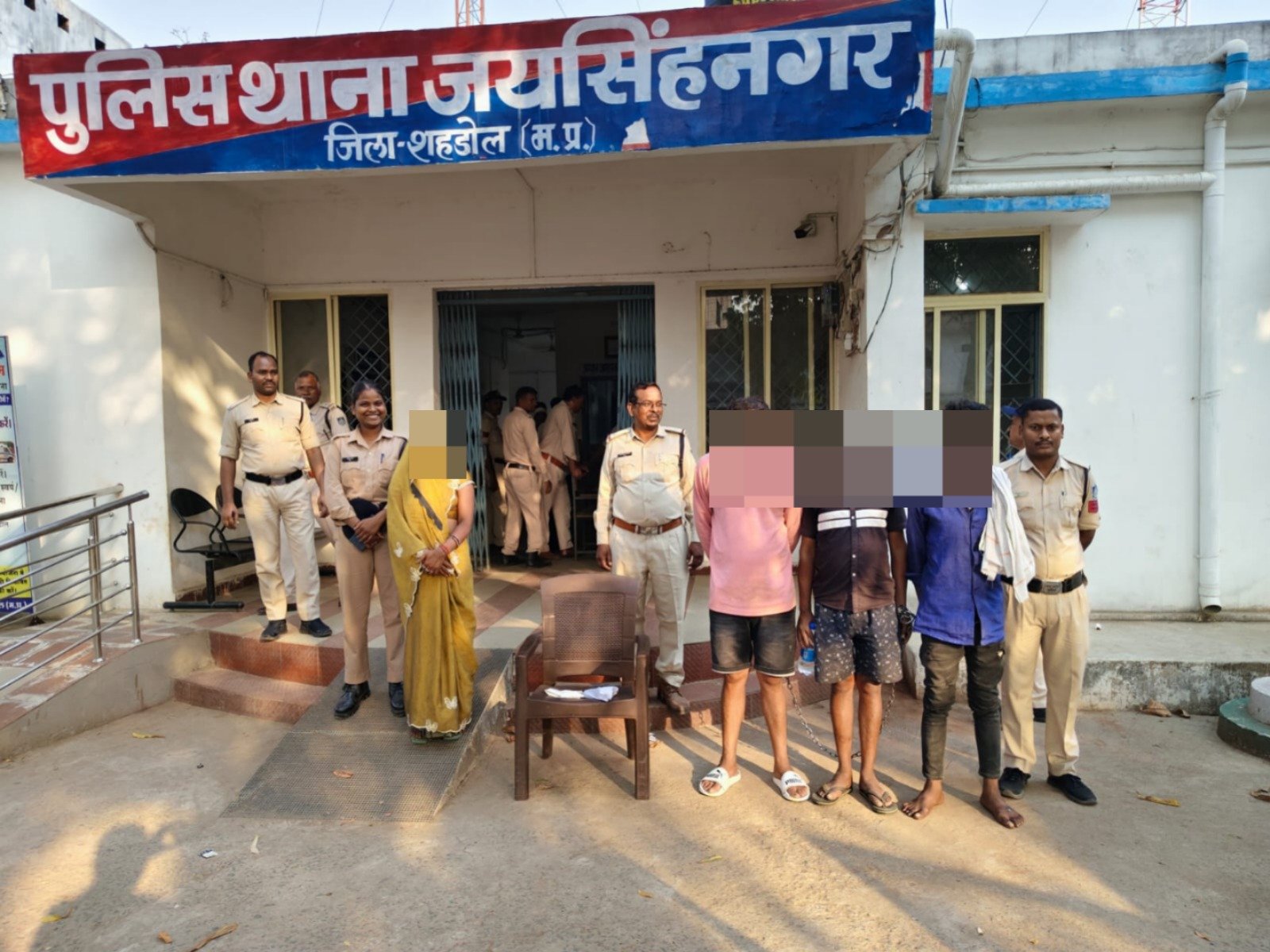 जैसिंहनगर (शहडोल): थाना जैसिंहनगर पुलिस ने नशीले पदार्थों के खिलाफ एक महत्वपूर्ण सफलता हासिल करते हुए अवैध स्मैक (हेरोइन) की तस्करी कर रहे चार आरोपियों को गिरफ्तार किया है। पुलिस को मुखबिर से सटीक सूचना मिली थी कि रीवा से शहडोल की ओर आ रही बस (MP17P5255) में पुरुष और महिला भारी मात्रा में नशीला पदार्थ लेकर जा रहे हैं। त्वरित कार्रवाई करते हुए पुलिस टीम ने बस स्टैंड पर घेराबंदी की और बस की तलाशी ली।