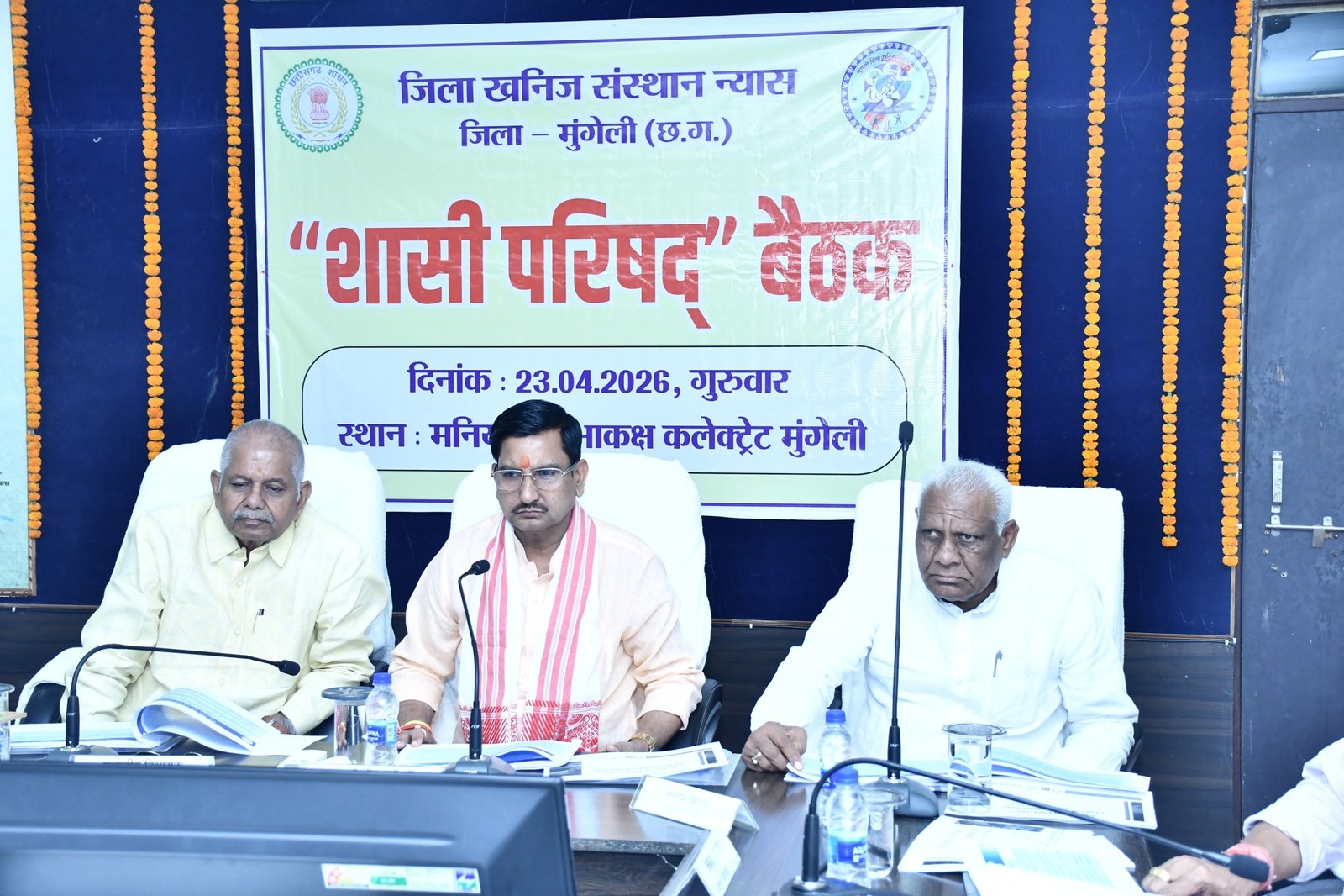 मुंगेली, 23 अप्रैल 2026//    जिला खनिज संस्थान न्यास (डीएमएफ) की शासी परिषद की महत्वपूर्ण बैठक केंद्रीय राज्यमंत्री श्री तोखन साहू की अध्यक्षता में कलेक्टोरेट स्थित मनियारी सभाकक्ष में संपन्न हुई। बैठक में जिले के समग्र विकास को गति देने हेतु पंचवर्षीय परिप्रेक्ष्य योजना एवं वार्षिक कार्ययोजना पर सहमति बनी। बैठक के दौरान पूर्व में अनुमोदित कार्ययोजनाओं की सेक्टरवार प्रगति, स्वीकृत एवं व्यय राशि सहित डीएमएफ निधि के उपयोग से संचालित विभिन्न गतिविधियों की विस्तृत समीक्षा की गई। साथ ही न्यास नियम 2015 के प्रावधानों के तहत योजनाओं के प्रभावी निर्माण एवं क्रियान्वयन पर चर्चा कर महत्वपूर्ण निर्णय लिए गए। प्रधानमंत्री खनिज क्षेत्र कल्याण योजना के संशोधित दिशा-निर्देशों के अनुरूप अन्य जिलों को राशि अंतरण के प्रावधान समाप्त होने से अव्ययित राशि के उपयोग पर भी जानकारी साझा की गई।