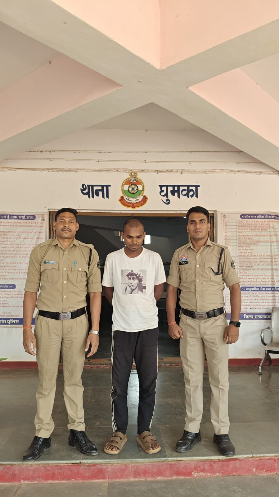 राजनांदगाव / पीडिता अपने घर में थी तभी आरोपी पीडित/प्रार्थीया के पीछा करते हुए उसके घर के बाहर आया और पीडिता को आरोपी चल मेरे साथ कहकर जबदरस्दी करने लगा पीडिता को गंदी गंदी गाली गलौच करते हुए हांथ, बांह को पकडकर जबरदस्ती शारीरिक संबंध बनाने कि कोशिश करने लगा जिसे मना करने पर पीडिता को जान से मारने देने की धमकी देने लगा पीडित/प्रार्थीया घटना के संबंध में अपने परिजनों को बताई उसके बाद पीडिता अपनी मां के साथ दिनांक 31/03/2026 को थाना घुमका आकर थाना में लिखित आवेदन पत्र दिया जिस पर थाना घुमका के द्वारा अपराध पंजीबद्ध कर प्रकरण महिला संबंधित होने से उक्त घटना क्रम की सूचना वरिष्ठ पुलिस अधिकारियों को दी गई जिस पर प्रकरण को गंभीरता से लेते हुए पुलिस अधीक्षक महोदया सुश्री अंकिता शर्मा, अतिरिक्त पुलिस अधीक्षक महोदय श्री कीर्तन राठौर, अनुविभागीय पुलिस अधिकारी डोंगरगांव श्रीमति मंजूलता बाज के निर्देशन में थाना घुमका पुलिस के द्वारा आरोपी का पातासाजी करते ग्राम भठली थाना साल्हेवारा जिला के0सी0जी0 से पकड़ हिरासत में लेकर पुछताछ किया गया जिन्होंने घटना कारित करना स्वीकार करने पर दिनांक 14/04/2026 को गिरफतार कर माननीय न्यायालय राजनांदगांव के समक्ष रिमाण्ड हेतु पेश किया गया है