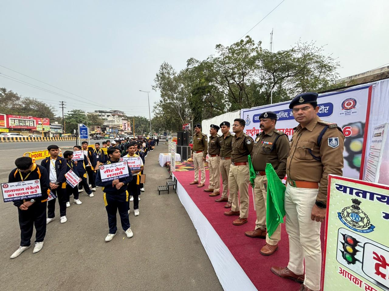 इंदौर- शहर में सुरक्षित यातायात के लिये आम नागरिकों में यातायात के प्रति जागरूक करने उद्देश्य से, पुलिस आयुक्त नगर इंदौर संतोष कुमार सिंह के दिशा निर्देश में अति. पुलिस आयुक्त नगरीय इंदौर आर.के. सिंह एवं पुलिस उपायुक्त, यातायात प्रबंधन, नगरीय इंदौर आनंद कलादगी यातायात प्रबंधन पुलिस द्वारा राष्ट्रीय सड़क सुरक्षा माह–2026 के अंतर्गत 1 जनवरी 2026 से 31 जनवरी 2026 तक इंदौर में सड़क सुरक्षा जागरूकता को लेकर अभियान चलाया,, जागरूकता पैदल रैली को पुलिस उपायुक्त, यातायात प्रबंधन आनंद कलादगी ने हरी झंडी दिखाकर रवाना किया,,और कहा
