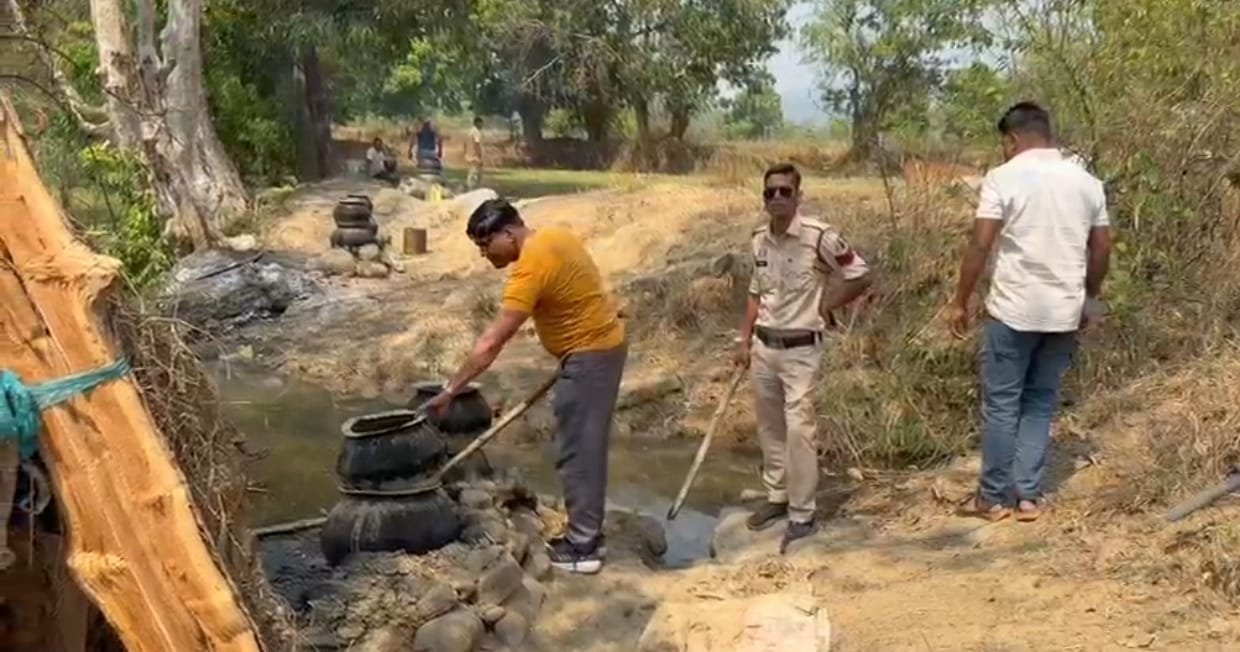 रायगढ़ पुलिस का “ऑपरेशन आघात”: घरघोड़ा में नदी किनारे चल रही 8 अवैध भट्ठियां ध्वस्त, 190 लीटर शराब के साथ आरोपी गिरफ्तार