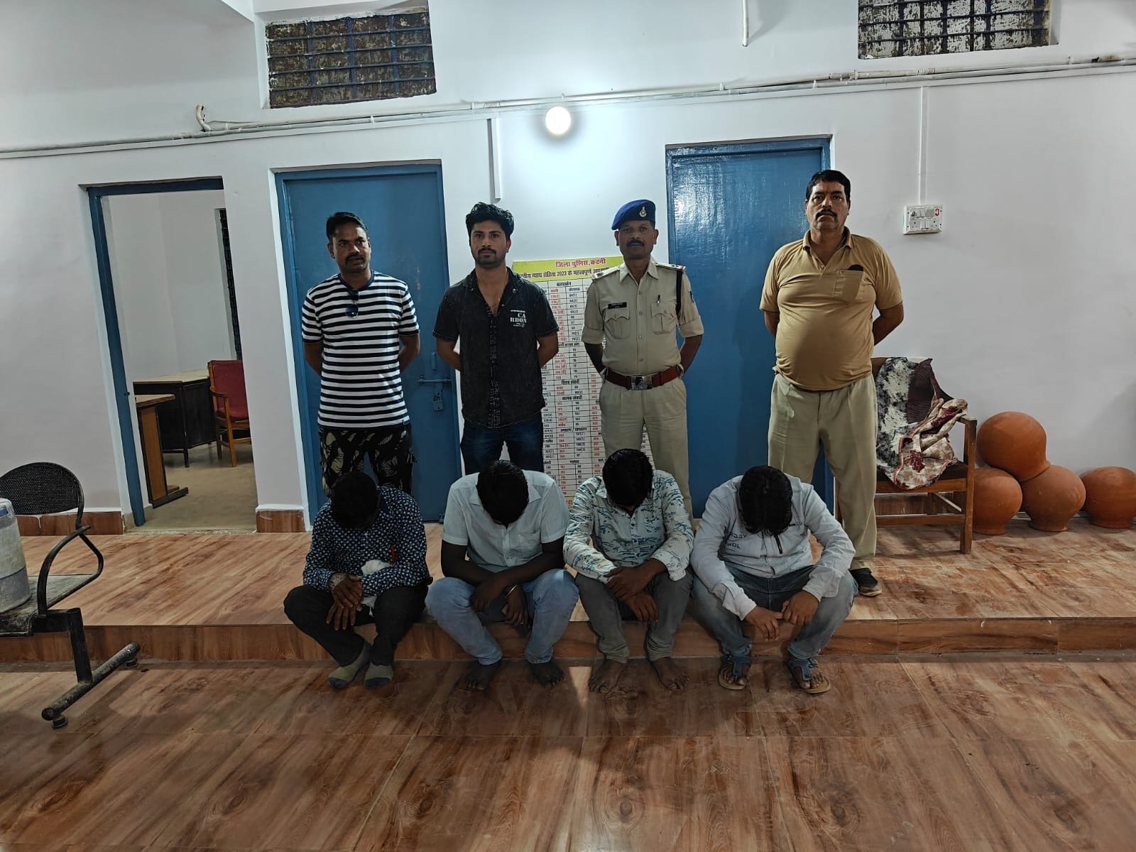 कटनी की रोकथाम के अंतर्गत अतिरिक्त पुलिस अधीक्षक डॉ संतोष डेहरिया के निर्देशन तथा एसडीओपी स्लीमनाबाद आकांक्षा चतुर्वेदी के मार्गदर्शन में थाना बहोरीबंद पुलिस को सूचना प्राप्त हुई कि ग्राम कुआं भिड़़की हार के जंगल में कुछ लोग ताश पत्तों से रुपए पैसों की हार जीत का दाव लगाकर जुआ खेल रहे हैं सूचना पर तत्काल रेट कार्यवाही की गई तो ग्राम कुआ भिड़़की के हार के जंगल में अनिल पांडे, गेंदालाल हल्दकार, भोलू खटीक एवं राजू शिव पाठक रुपए पैसों की हार जीत का दाव लगाकर जुआ खेलते मिले, जिनके कब्जे से एक फड से कुल ताश के 52 पत्ते और 73600 रुपए नगदी तथा 03 मोटरसाइकिल एवं एक स्विफ्ट कार कीमत 5, 45,000 रुपए कुल जुमला राशि 6,18,600 रुपए जप्त की गई है ।सभी आरोपीयों के विरुद्ध 13 जुआ एक्ट के तहत कार्यवाही की गई ।