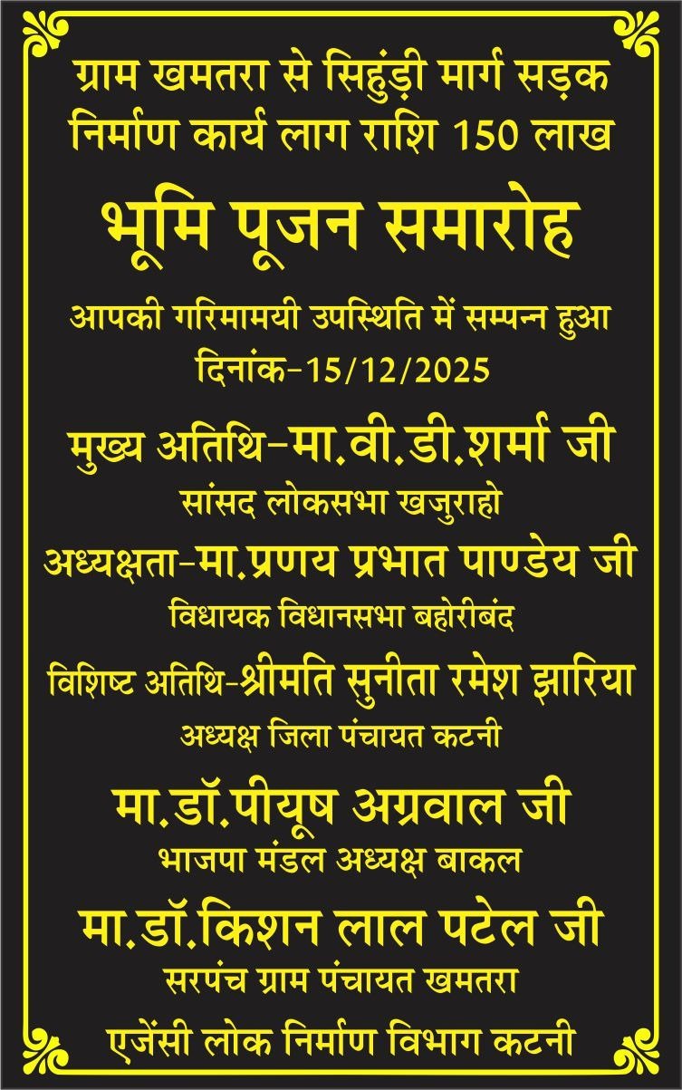 बहोरीबंद विकासखंड के ग्राम पंचायत खमतरा मैं खमतरा से सिंहुंडी तक बनने वाली लगभग 1 करोड़ 43 लाख रुपये की सड़क निर्माण को लेकर विवाद गहराता जा रहा है। क्षेत्र के बहुप्रतीक्षित इस मार्ग का 15 दिसंबर 2025 को भूमि पूजन कर निर्माण कार्य शुरू किया गया था, लेकिन अब ग्रामीणों ने निर्माण कार्य में गंभीर अनियमितताओं के आरोप लगाते हुए प्रशासन से जांच की मांग की है। ग्रामीणों का आरोप है कि सड़क निर्माण में उपयोग की जा रही गिट्टी एवं डस्ट में मिट्टी मिलाई जा रही है, जिससे सड़क की गुणवत्ता और मजबूती पर सीधा असर पड़ सकता है। उनका कहना है कि यदि निर्माण कार्य में निम्न स्तर की सामग्री का उपयोग किया गया तो सड़क कुछ ही समय में खराब हो सकती है, जिससे सरकारी धन की बर्बादी होगी और ग्रामीणों को फिर से परेशानियों का सामना करना पड़ेगा। ग्रामीणों ने बताया कि यह सड़क लंबे समय से क्षेत्र की प्रमुख मांग रही है, क्योंकि खमतरा से सिंहुंडी तक का मार्ग ग्रामीणों के लिए आवागमन का मुख्य रास्ता है।सड़क बनने से लोगों को आवागमन में बड़ी सुविधा मिलने की उम्मीद थी, लेकिन निर्माण की गुणवत्ता को लेकर उठ रहे सवालों ने लोगों की चिंता बढ़ा दी है। ग्रामीणों ने प्रशासन से मांग की है कि सड़क निर्माण से संबंधित टेंडर, कार्यादेश, सड़क की लंबाई, चौड़ाई, मोटाई और अन्य तकनीकी मानकों की जानकारी सार्वजनिक की जाए। उनका कहना है कि यदि कार्य मानकों के अनुरूप हो रहा है तो इसकी पारदर्शिता जनता के सामने आनी चाहिए। ग्रामीणों ने जिला प्रशासन से मांग की है कि सड़क निर्माण कार्य की तकनीकी जांच कराई जाए और यदि निर्माण में लापरवाही या अनियमितता सामने आती है तो संबंधित ठेकेदार और जिम्मेदार अधिकारियों के खिलाफ सख्त कार्रवाई की जाए। यदि जांच में निर्माण कार्य में भ्रष्टाचार या सरकारी धन के दुरुपयोग की पुष्टि होती है तो संबंधित लोगों के खिलाफ भारतीय न्याय संहिता (BNS) की धारा 316 (आपराधिक विश्वासघात), धारा 318 (धोखाधड़ी), धारा 336 (लोक सेवक द्वारा पद का दुरुपयोग) के तहत मामला दर्ज किया जा सकता है। इसके अलावा भ्रष्टाचार निवारण अधिनियम, 1988 के तहत भी कार्रवाई की संभावना से इंकार नहीं किया जा सकता।