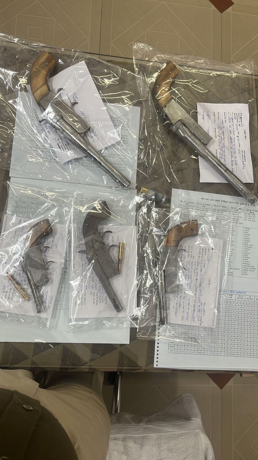 इसी क्रम में पुलिस अधीक्षक अशोकनगर श्री राजीव कुमार मिश्रा के निर्देशन में, अतिरिक्त पुलिस अधीक्षक अशोकनगर श्री गजेन्द्र सिंह कंवर एवं एसडीओपी चंदेरी श्री महेश शर्मा के मार्गदर्शन में थाना प्रभारी चंदेरी निरीक्षक प्रशांत कुमार यादव द्वारा अवैध हथियारों के विरुद्ध प्रभावी कार्यवाही करते हुये 05 अवैध देशी कट्टे एवं 03 जिंदा कारतूस सहित तीन आरोपी गिरफ्तार करने में सफलता प्राप्त की है।