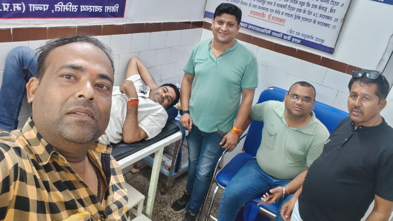 इसी कड़ी मे आज पत्रकार एकता मंच के साथी पत्रकार लक्ष्मी कांत शर्मा की पुत्री को ब्लड की अति आवश्यकता थी जैसे ही पत्रकार एकता मंच को जानकारी मिली तभी तुरंत ही पत्रकार एकता मंच के समन्वयक अध्यक्ष शिव किशोर पांडे ने अपना रक्तदान किया।।