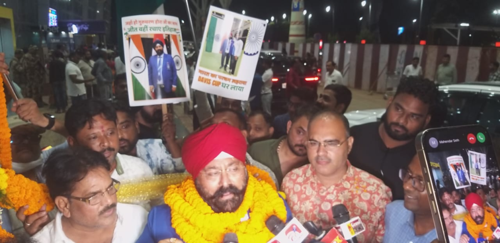 छत्तीसगढ़ टेनिस एसोसिएशन के महासचिव व डेविस कप में भारतीय टीम के समन्वयक गुरुचरण सिंह होरा 12 और 13 सितम्बर को स्वीट्ज़रलैंड में आयोजित डेविस कप वर्ल्ड ग्रुप 1 टाई में शामिल हुए, इस दौरान एकल, युगल मैच खेले गए, इस मुकाबले में समन्वयक गुरुचरण सिंह होरा के नेतृत्व में भारतीय टीम ने स्वीट्ज़रलैंड के खिलाफ 3 – 1 से ऐतिहासिक जीत दर्ज की और पूरी दुनिया में भारत देश का नाम गौरांवित किया। वहीं मंगलवार को समन्वयक गुरुचरण सिंह होरा वापस रायपुर पहुंचे, जहां रायपुर एयरपोर्ट में श्री होरा का भव्य स्वागत किया गया, उनके आगमन पर अनेक खेलों के पदाधिकारी, ग्रैंड विजन के कर्मचारी एवं कई खेल प्रेमियों ने गुलदस्ता भेंटकर गाजे बाजे के साथ उनका भव्य स्वागत किया। और उन्हें इस ऐतिहासिक जीत के लिए बधाई दी। वहीं इस दौरान भारत माता की जय के जयकारे भी लगाए गए।
