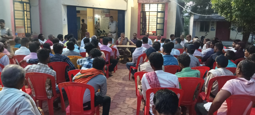 पुलिस अधीक्षक कटनी अभिनय विश्वकर्मा के द्वारा आगामी दुर्गा उत्सव एवं विसर्जन को ध्यान में रखते हुए सभी थाना प्रभारी को शांति समिति बैठक का आयोजन करने हेतु निर्देशित किया गया था जिसके पालन में एवं अतिरिक्त पुलिस अधीक्षक डॉ संतोष डेहरिया, एसडीओपी स्लीमनाबाद के मार्गदर्शन में थाना बहोरीबंद प्रभारी अखलेश दाहिया द्वारा थाना परिसर में शांति समिति की बैठक का आयोजन किया गया जिसमें जनप्रतिनिधि एवं गणमान्य नागरिकों एवं दुर्गा उत्सव समितियां के पदाधिकारी, राजस्व अधिकारी – तहसीलदार राजकुमार नामदेव , तह. आकाश दीप नामदेव एवं ग्राम पंचायत के सचिव सरपंच उपस्थित रहे । शांति समिति की बैठक मे शारदेय नवरात्र महापर्व पर सभी लोग शांति और सोहादर्य पूर्ण वातावरण मे मिलकर मनाने एवं सुरक्षा की दृष्टि सड़क छोड़कर पंडाल लगाने, विद्युत लाइनों के नीचे पंडाल नहीं लगते,डीजे आदि के संबंध में समझाइए दी गई।