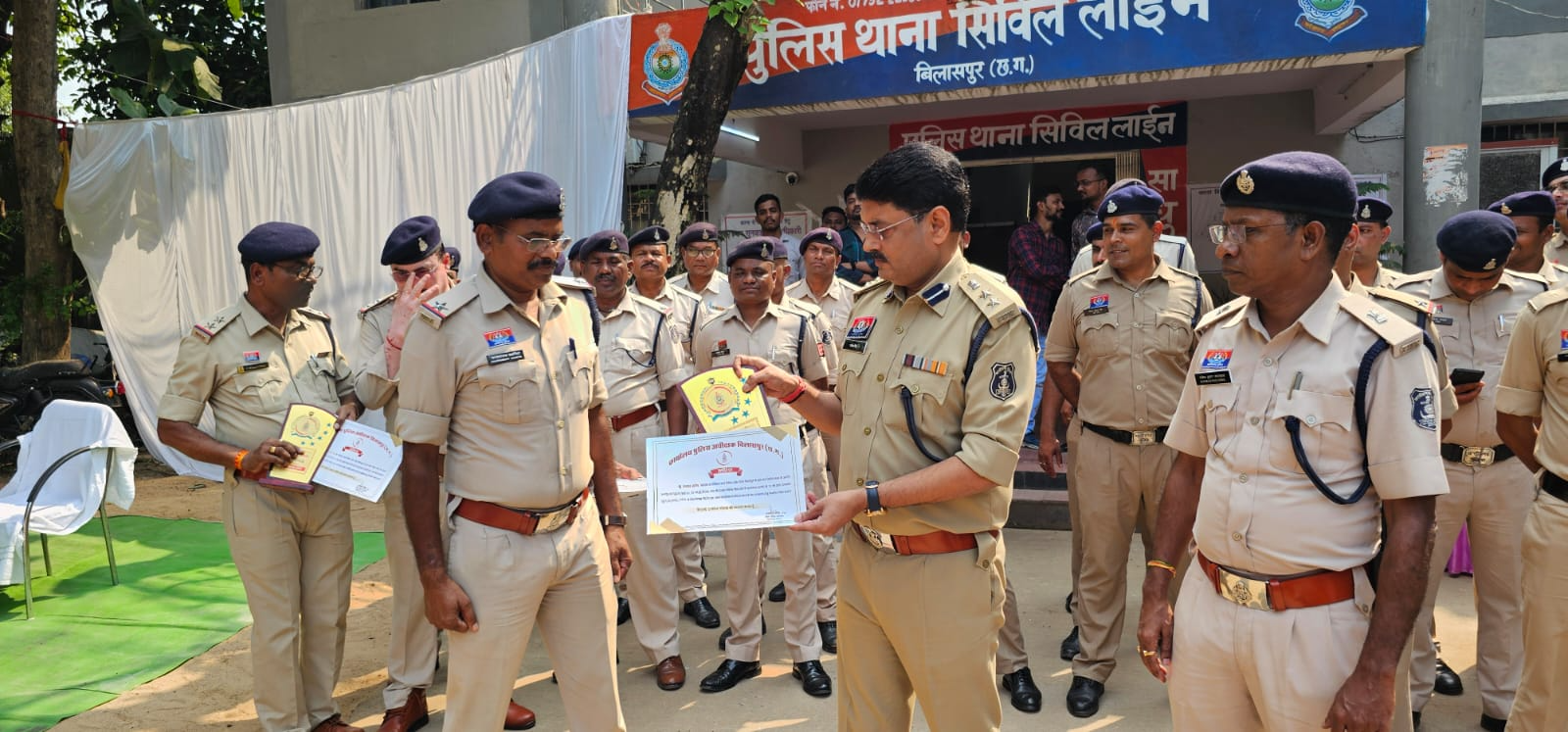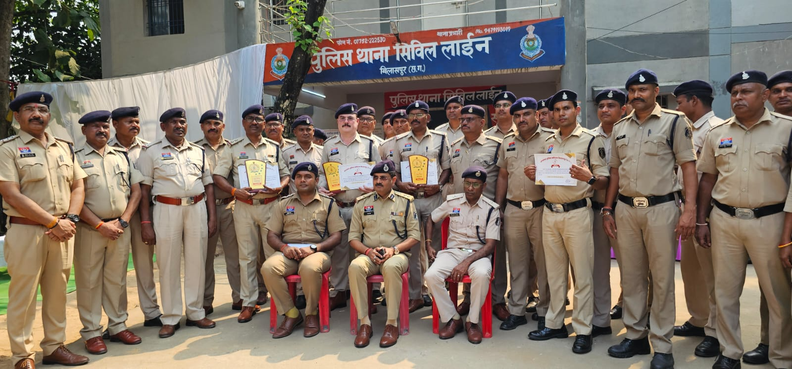 इन प्रकरणों में उत्कृष्ट विवेचना एवं सहयोग करने वाले पुलिस अधिकारी एवं कर्मचारियों—उपनिरीक्षक अमृत साहू, उपनिरीक्षक अवधेश सिंह, सहायक उपनिरीक्षक चन्द्रकांत डहरिया, सहायक उपनिरीक्षक राजेशधर दीवान, आरक्षक मनोज साहू एवं आरक्षक बृजनंदन साहू—को वरिष्ठ पुलिस अधीक्षक श्री राजनेश सिंह, बिलासपुर द्वारा थाना सिविल लाइन में स्वयं उपस्थित होकर प्रशस्ति पत्र एवं मोमेंटो प्रदान कर सम्मानित किया गया।