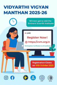 वीवीएम के राज्य मीडिया समन्वयक, ब्रज प्रान्त अश्वनी कुमार जैन ने बताया कि विद्यार्थी विज्ञान मंथन की परीक्षा एक ऑनलाइन प्लेटफार्म है। जिसमे विद्यार्थी स्कूल स्तर, जनपद स्तर, राज्य स्तर एवं राष्ट्रीय स्तर तक अपनी प्रतिभा का प्रदर्शन कर सकते हैं। विद्यार्थी विज्ञान मंथन विद्यार्थियों की प्रतिभा खोज का राष्ट्रीय स्तर का मंच है। राज्य स्तरीय शिविर में प्रत्येक राज्य के प्रत्येक वर्ग के शीर्ष 25 रैंकर्स को एक या दो दिवसीय राज्य स्तरीय शिविर में भाग लेने के लिए पहचाना जाएगा। शिविर राज्य के किसी भी स्थान पर आयोजित किया जाएगा। राष्ट्रीय शिविर में प्रत्येक कक्षा से शीर्ष दो छात्रों यानी प्रत्येक राज्य से कुल 12 छात्रों को दो दिवसीय राष्ट्रीय शिविर में आमंत्रित किया जाएगा। छात्र अधिक जानकारी https://vvm.org.in पर कर सकते हैं। उन्होंने ब्रज प्रान्त के अंतर्गत आने वाले सभी जनपद के जिला समन्वयक से अनुरोध किया है कि 15 अक्टूबर 2025 तक विद्यार्थियों को मॉक टेस्ट में अवश्य प्रतिभाग कराएं, जिससे विद्यार्थी अपने यूजर आईडी एवं पासवर्ड का प्रयोग करके मॉक टेस्ट में अपनी तैयारी का आंकलन कर सकें। वीवीएम में ऑनलाइन रजिस्ट्रेशन की अंतिम तिथि 10 अक्टूबर है।
