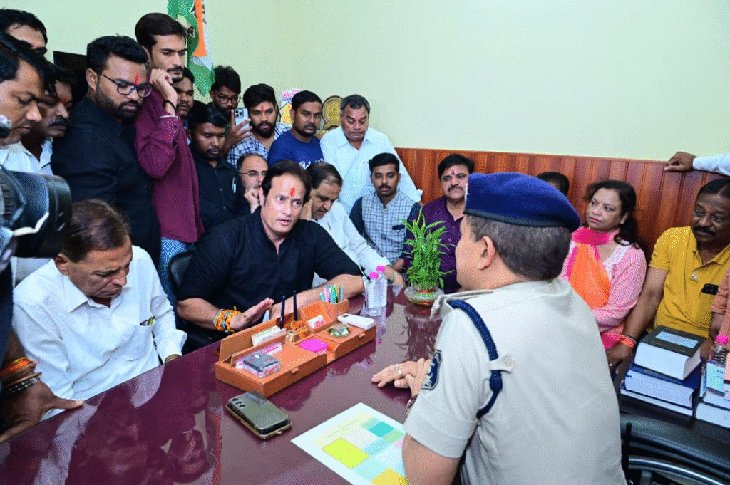 रायपुर (छत्तीसगढ़)। पूर्व विधायक विकास उपाध्याय ने बताया कि आज सैंकड़ों की संख्या में कांग्रेसजन दोपहर 12 बजे से शाम 5 बजे तक सिविल लाईन थाने का घेराव किये। उपाध्याय ने बताया कि लोकसभा के नेता प्रतिपक्ष राहुल गांधी जी को सीने में गोली मारने के अशोभनीय बयान को लेकर केरला बीजेपी प्रवक्ता पिन्टू अमित महादेव के ऊपर एफआईआर दर्ज कराने 29.09.2025 सोमवार को काफी संख्या में कांग्रेसजन सिविल लाईन थाना पहुँचे थे और एफआईआर की मांग को लेकर आवेदन दिये थे लेकिन आज दिनांक 06.10.2025 तक बीजेपी प्रवक्ता पिन्टू अमित महादेव के ऊपर एफआईआर नहीं की गई है जबकि पश्चिम बंगाल की सांसद महुआ मोईत्रा द्वारा देश के गृहमंत्री अमित शाह को लेकर बयान दिया गया था और माना थाने में भारतीय जनता पार्टी के कार्यकर्ताओं द्वारा एफआईआर कराई गई है। जबकि राहुल गांधी जी के ऊपर ऐसे ही बयान दिये जाने को लेकर असम, महाराष्ट्र, उत्तरप्रदेश, गुजरात सहित अनेकों प्रदेश में एफआईआर दर्ज किये गये हैं लेकिन भारतीय जनता पार्टी के प्रवक्ता के ऊपर मामला दर्ज नहीं किया जा रहा है। अब क्या एक प्रदेश में दो कानून चलेगा? पुलिस प्रशान भारतीय जनता पार्टी की कठपुतली बन चुकी है। उपाध्याय ने कहा कि पुलिस थाने का नामकरण कर देना चाहिए कि अब से पुलिस थाने को एकात्म परिसर के नाम से जाना जाये।