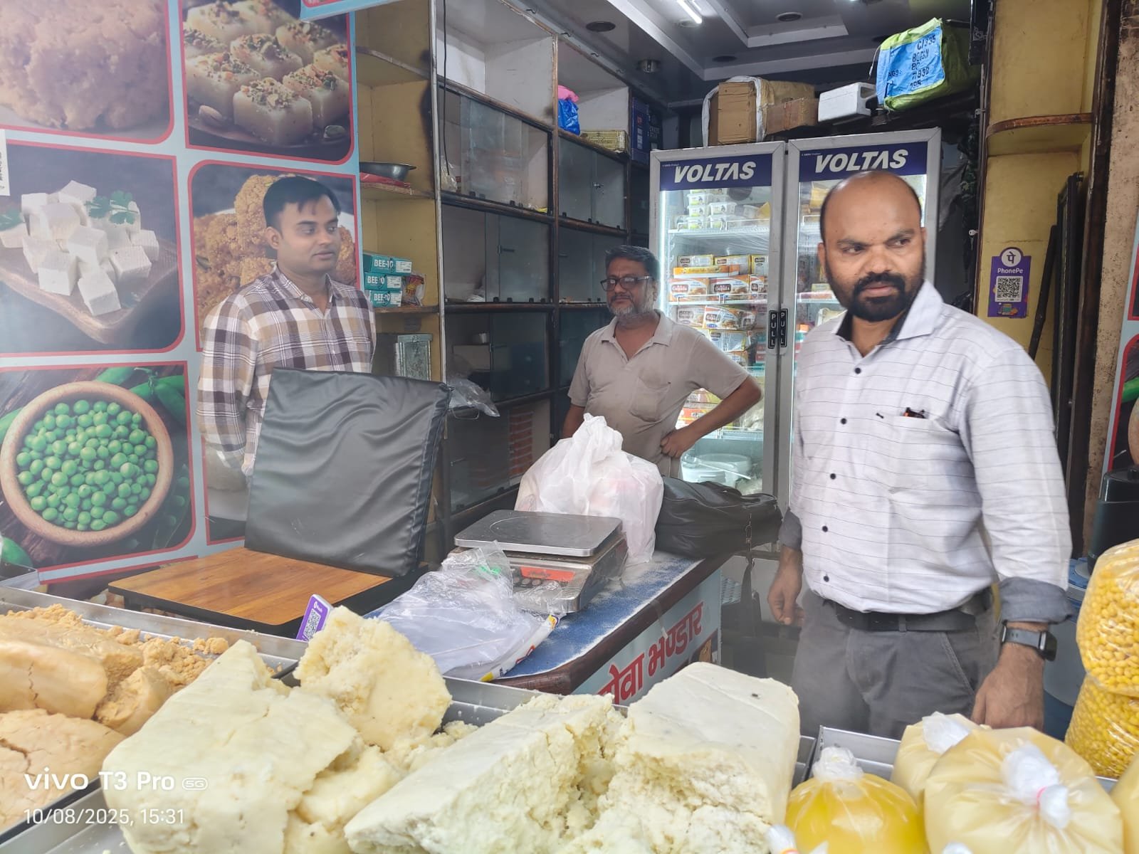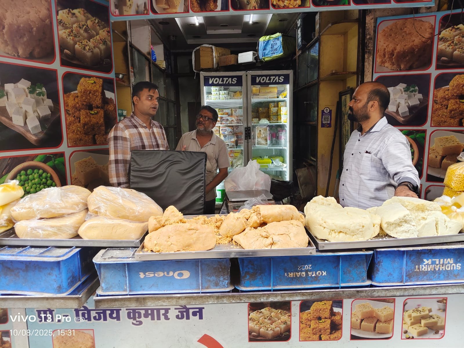 ।कलेक्टर श्री आशीष तिवारी के निर्देश पर त्यौहारी सीजन में विक्रय होने वाले खाद्य पदार्थ विशेष कर मिठाई खोवा दूध एवं दूध से निर्मित खाद्य पदार्थों की जांच हेतु वार्ड क्रमांक 16 से 30 तक के प्रतिष्ठान की जांच हेतु राजस्व विभाग एवं खाद्य सुरक्षा विभाग की संयुक्त जांच दल द्वारा बुधवार को सिल्वर टॉकीज खोवा मंडी स्थित खाद्य प्रतिष्ठान जैन खोवा भंडार एवं गुप्ता खोवा भंडार की जांच की गई।