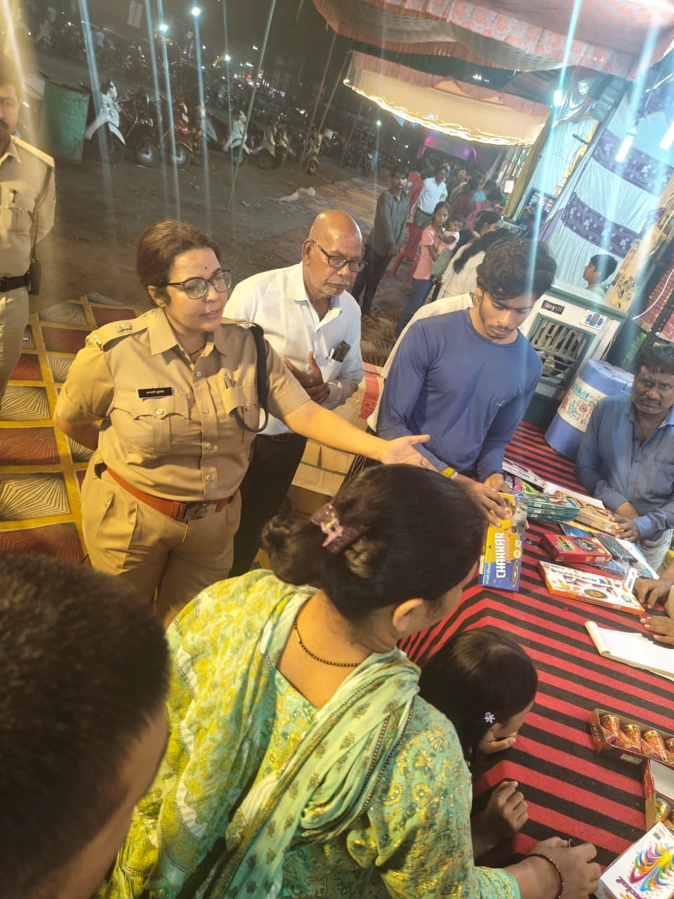 अतिरिक्त पुलिस अधीक्षक द्वारा पटाखा बाजार पहुंचकर लोगों को उनके सुरक्षा संबंधित सलाह दी गई और सुझाव दिए गए वहीं पटाखा बाजार में भी निरीक्षण करके पटाखा बाजार में रहने वाली उचित व्यवस्था एवं नागरिकों की सुरक्षा के हेतु निर्धारित माफ दंड का दुकानदारों द्वारा पालन किया जा रहा कि नहीं इसकी जानकारी भी ली गई और सभी नागरिकों को सलाह दी है और अपील की है कि सभी लोग सुरक्षित ढंग से दिवाली का पावन त्यौहार मनाए