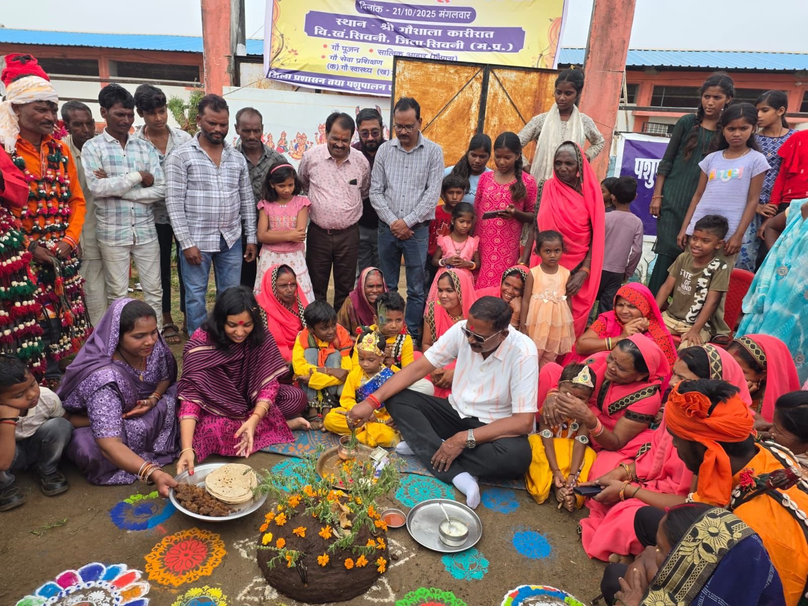 सिवनी विधानसभा क्षेत्र अंतर्गत ग्राम कारीरात स्थित गौशाला में जिला प्रशासन एवं पशुपालन विभाग द्वारा आयोजित गोवर्धन पूजा कार्यक्रम में विधायक श्री दिनेश राय “मुनमुन” जी ने विधि-विधान से गोवर्धन एवं गौमाता का पूजन किया