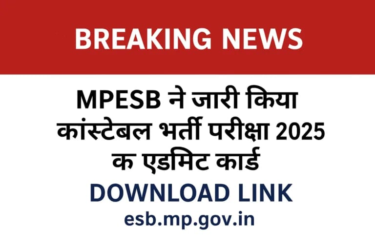 मध्य प्रदेश कर्मचारी चयन मंडल (MPESB) ने कांस्टेबल भर्ती परीक्षा 2025 के लिए एडमिट कार्ड जारी कर दिए हैं। उम्मीदवार अब आधिकारिक वेबसाइट esb.mp.gov.in पर जाकर अपना MP Police Constable Admit Card 2025 डाउनलोड कर सकते हैं।—