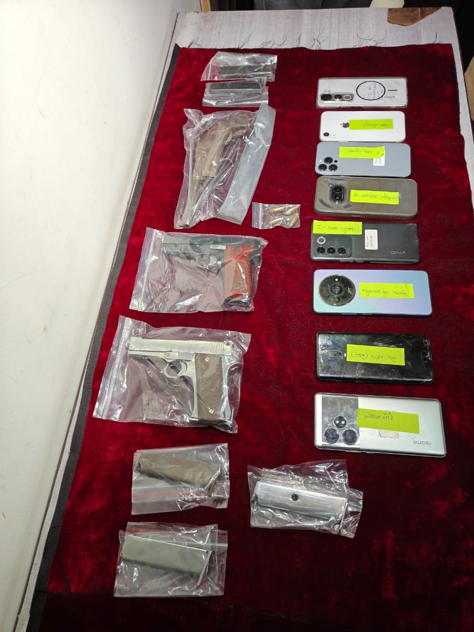 आरोपियो के कब्जे से घटना में प्रयुक्त देशी पिस्टल व देशी कट्टा जप्त।