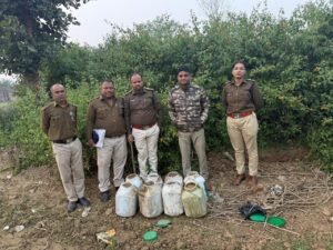 585 किलोग्राम जब्त महुआ लाहन को किया गया नष्ट