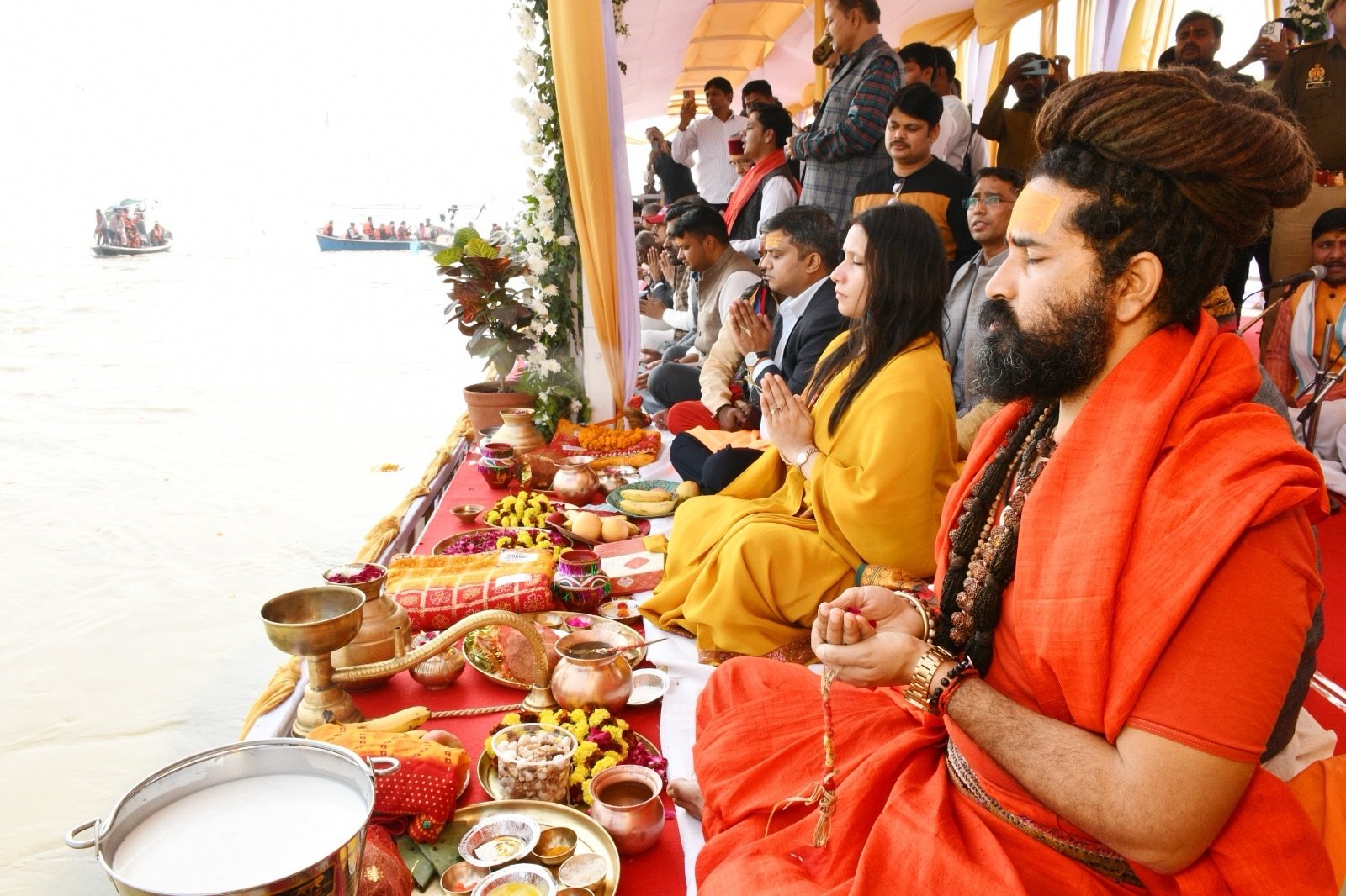 पुलिस आयुक्त जोगेन्द्र कुमार अन्य अधिकारियों के द्वारा मंगलवार को वैदिक मंत्रोचार के साथ गंगा पूजन किया गया । इस अवसर पर बड़े हनुमान जी मंदिर के महंत बलवीर गिरि एवं अन्य संत महात्माओं के साथ महापौर उमेश चन्द्र गणेश केसरवानी ने भी मां गंगा का पूजन किया।