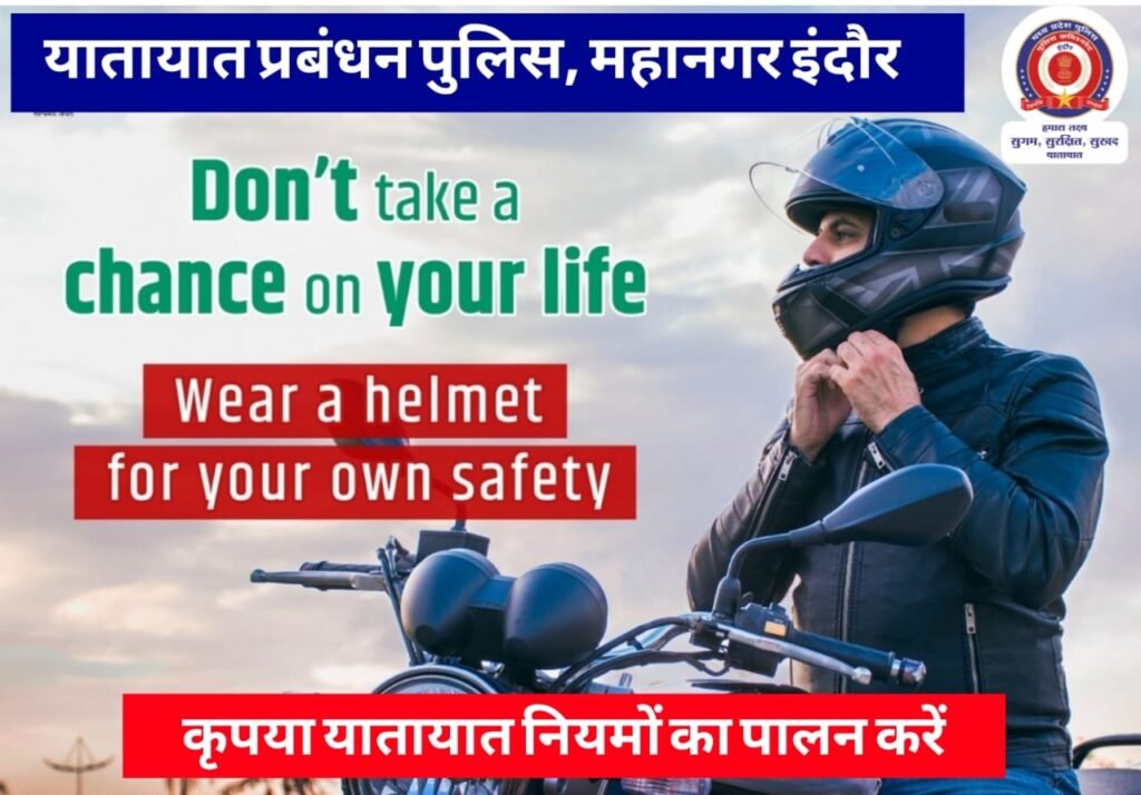 इंदौर ट्रैफिक पुलिस द्वारा लोगों से अपील की जाती है कि अपने तथा अपने परिवार की सुरक्षा के लिए सदा हेलमेट का उपयोग करे आपका परिवार आपके लौट कर आने की प्रतीक्षा करता है