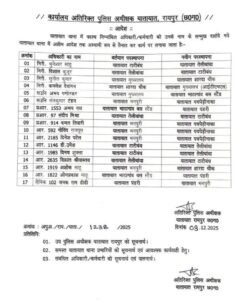 जारी आदेश के अनुसार, दो महत्वपूर्ण यातायात थानों के प्रभारियों में बदलाव किया गया है: