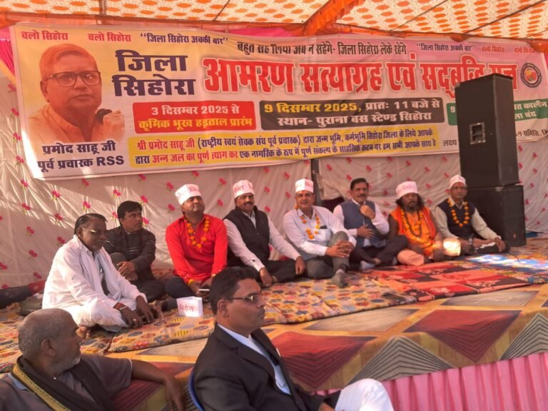 सबसे गंभीर स्थिति आमरण सत्याग्रह कर रहे प्रमोद साहू की है, जिन्हें तबीयत बिगड़ने पर अस्पताल में भर्ती किया गया था। बावजूद इसके, प्रमोद साहू ने आज घोषणा की कि वह अस्पताल छोड़ देंगे और किसी प्रकार का स्वास्थ्य लाभ नहीं लेंगे। उनका कहना है—”स्वास्थ्य से बड़ा सिहोरा जिला है। जब तक जिला नहीं बनता, तब तक यह संघर्ष नहीं रुकेगा।” इस घोषणा ने आंदोलन को और तीखा कर दिया है।