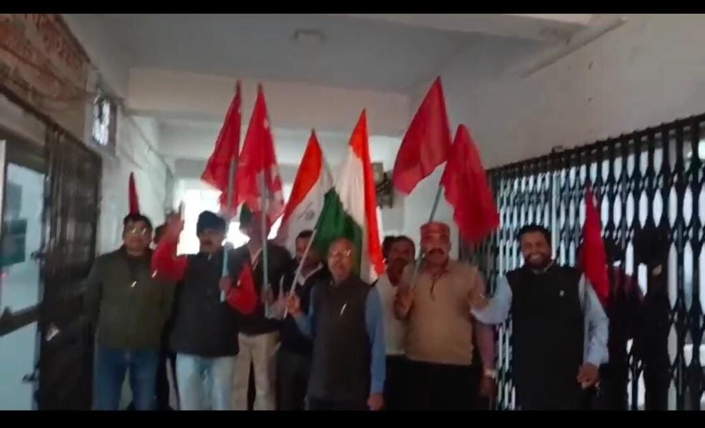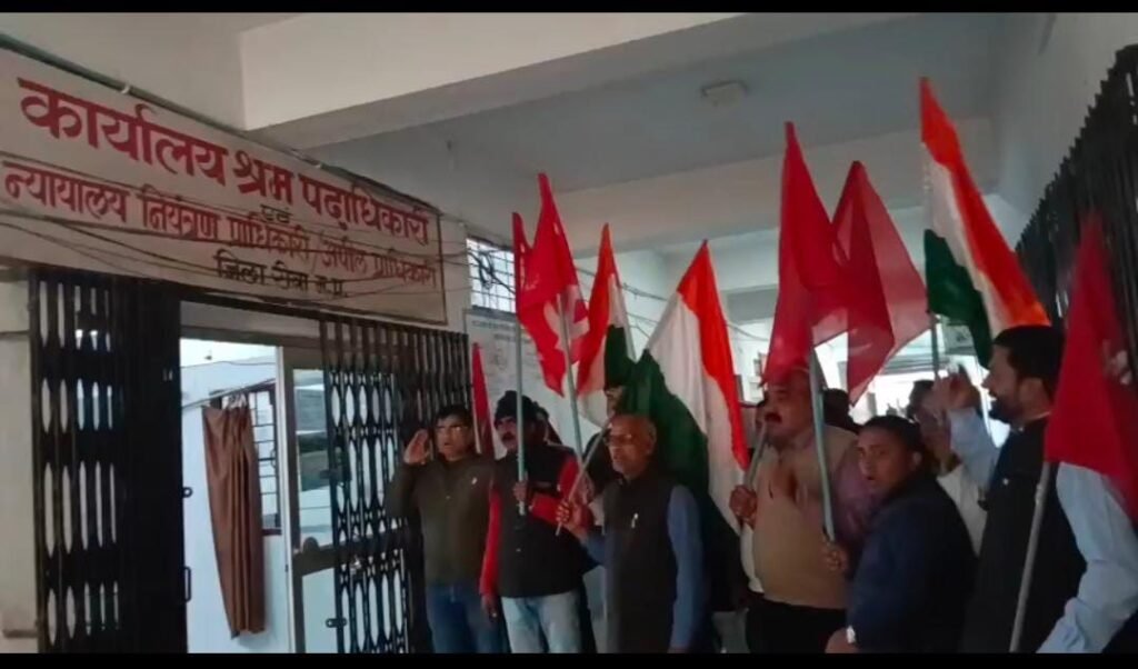 रीवा, केंद्र सरकार द्वारा लागू की गई चार श्रम संहिताओं के विरोध में संयुक्त ट्रेड यूनियन मंच के केंद्रीय आह्वान पर मंगलवार को रीवा में केंद्रीय श्रमिक संगठनों ने श्रम पदाधिकारी कार्यालय के समक्ष जोरदार प्रदर्शन किया। इस दौरान महामहिम राष्ट्रपति के नाम संबोधित एक ज्ञापन सौंपते हुए श्रम संहिताओं को पूरी तरह रद्द करने सहित विभिन्न मांगें उठाई गईं।