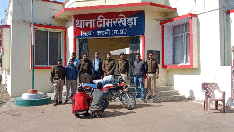 पुलिस अधीक्षक जिला कटनी अभिनय विश्वकर्मा (आई पी.एस.) द्वारा जिले में जुआ, सटटा, शराब तथा मादक पदार्थ की तस्करी में प्रभावी कार्यवाही हेतु निर्देश जारी किये गये थे जो निर्देश के पालन में अतिरिक्त पुलिस अधीक्षक संतोष डेडरिया एव एस.डी.ओ.पी. आंकाक्षा चतुर्वेदी के मार्गदर्शन में अवैध मादक पदार्थ की विक्रय एवं परिवहन में संलिप्त व्यक्तियों के विरुद्ध प्रभावी कार्यवाही करते हुये थाना प्रभारी ढीमरखेडा निरीक्षक अभिषेक चौबे के नेतृत्व में ढीमरखेडा पुलिस टीम द्वारा सफलता प्राप्त की है।