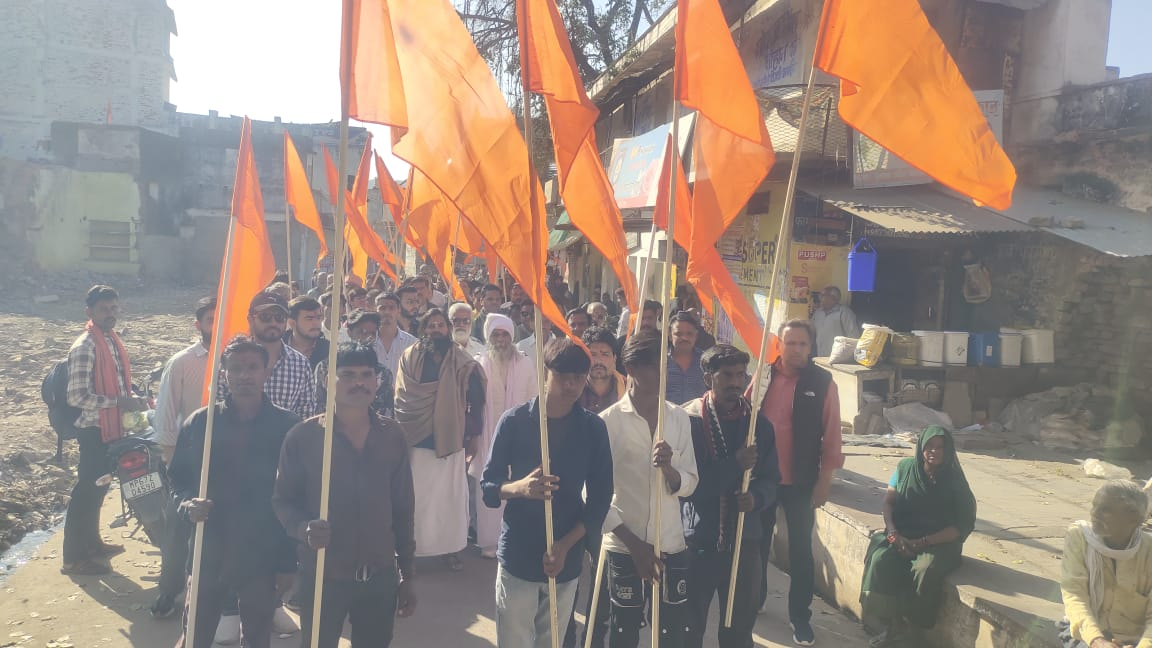यह चल समारोह शहर के प्रमुख मार्गों से होते हुए दिल्ली दरवाजे होते हुए नया बस स्टेंड पहुंचा ।नये बस स्टैंड के मैदान में वैदिक मंत्रोच्चार एवं वेद पाठ के साथ विधिवत रूप से ध्वज की स्थापना की गई तथा भूमि पूजन संपन्न हुआ। कार्यक्रम के दौरान महंत जुगल किशोर जी महाराज ने उपस्थित जनसमूह को संबोधित करते हुए हिंदू एकता, संस्कृति संरक्षण एवं संगठन की मजबूती पर अपने विचार रखे। इस अवसर पर बड़ी संख्या में हिंदू समाज के लोग उपस्थित रहे।