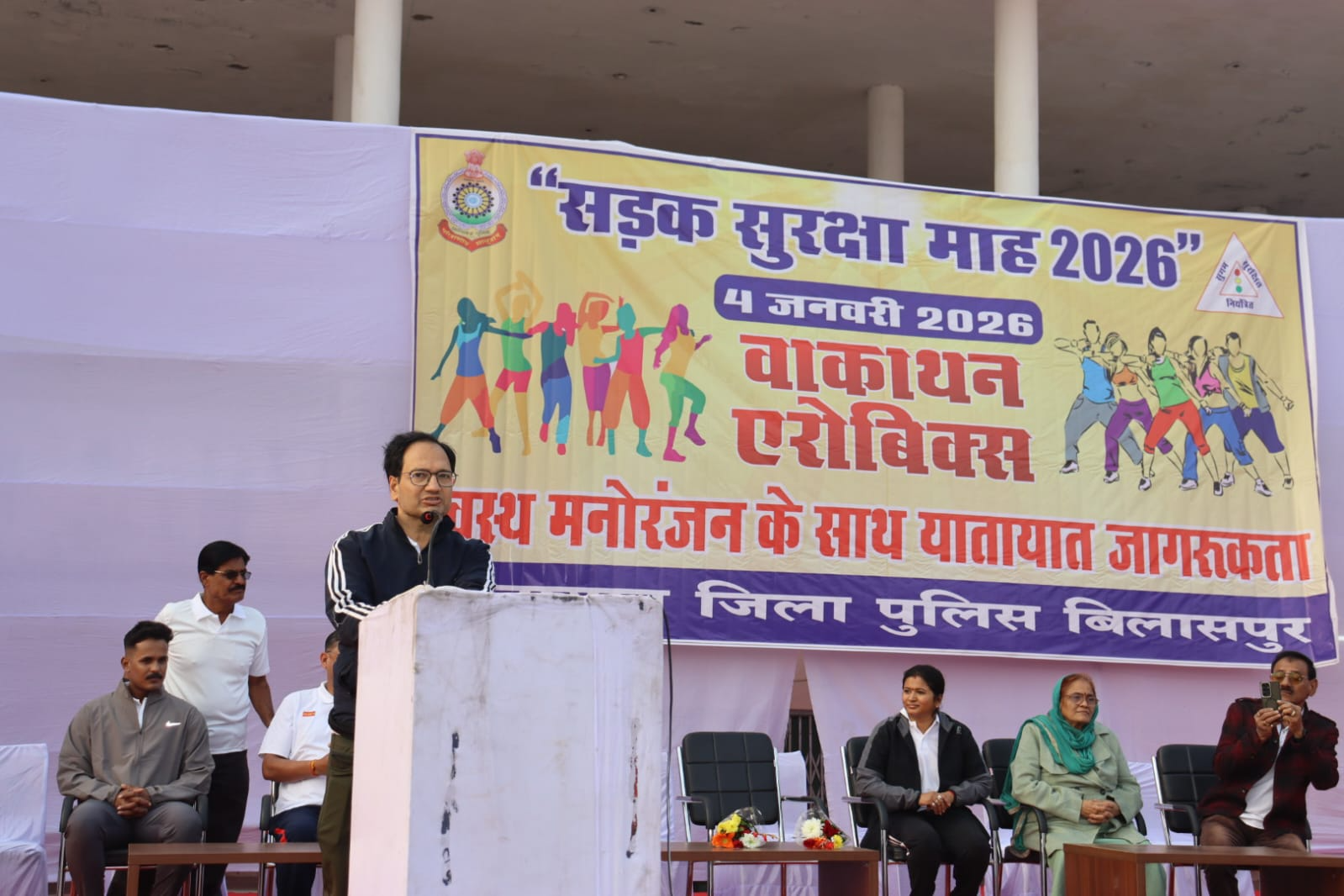 भारत सरकार के भूतल परिवहन मंत्रालय एवं पुलिस मुख्यालय के निर्देशानुसार, बिलासपुर जिले में 1 जनवरी से 31 जनवरी तक ‘राष्ट्रीय सड़क सुरक्षा माह 2026’ का आयोजन किया जा रहा है। इसी कड़ी में आज पुलिस परेड मैदान में स्वास्थ्य, मनोरंजन और जागरूकता का एक अनूठा संगम देखने को मिला, जहाँ जिला प्रशासन और पुलिस के आला अधिकारियों ने आम जनता के साथ कदम से कदम मिलाकर यातायात सुरक्षा का संकल्प लिया।