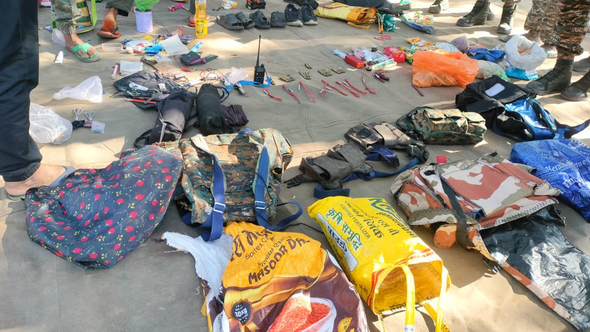 मुठभेड़ थमने के बाद जब इलाके की सर्चिंग की गई, तो घटनास्थल से नक्सलियों के दैनिक उपयोग की भारी मात्रा में सामग्री बरामद हुई, जिसे सुरक्षाबलों ने मौके पर ही नष्ट कर दिया। वर्तमान में क्षेत्र में सर्च ऑपरेशन और तेज कर दिया गया है।