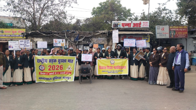 रायपुर शहर में यातायात नियमों के प्रति जागरूकता लाने और सड़क दुर्घटनाओं में कमी लाने के उद्देश्य से ‘सड़क सुरक्षा माह 2026’ के दसवें दिन विभिन्न कार्यक्रमों का आयोजन किया गया। शनिवार को स्काउट गाइड फेलोशिप और विकास शिक्षा महाविद्यालय के छात्र-छात्राओं ने विशाल हेलमेट बाइक रैली निकालकर आमजन को सुरक्षा का संदेश दिया।