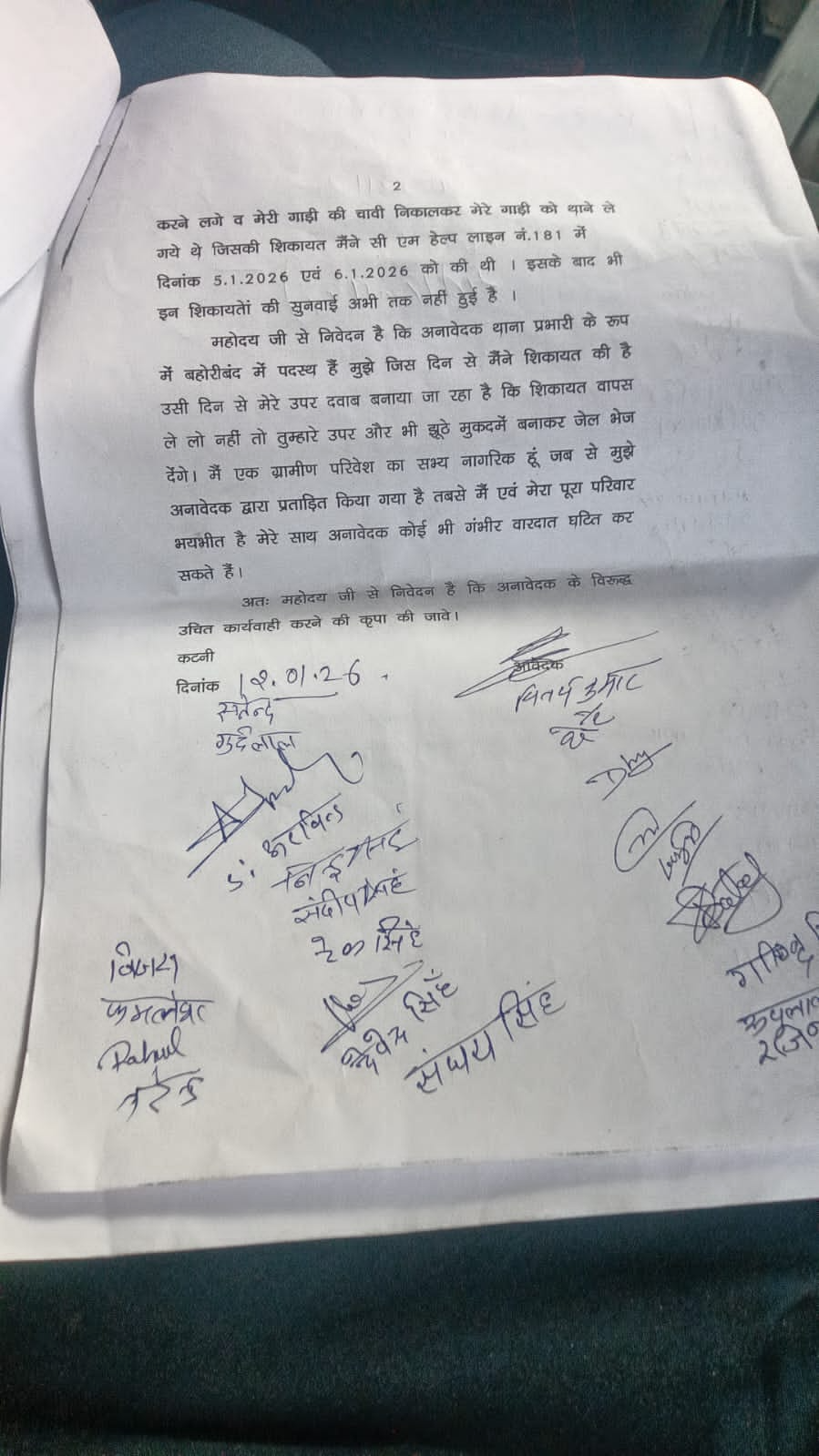 करने लगे व मेरी गाड़ी की चावी निकालकर मेरे गाड़ी को थाने ले गये थे जिसकी शिकायत मैंने सी एम हेल्प लाइन नं. 181 में दिनांक 5.1.2026 एवं 6.1.2026 को की थी। इसके बाद भी इन शिकायतों की सुनवाई अभी तक नहीं हुई है।