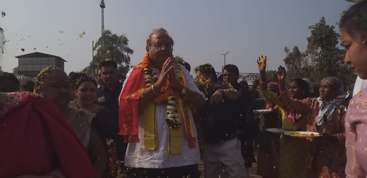 आत्मीय स्वागत: समाजसेवी कुबेर राठी और उनकी टीम ने ढोल-नगाड़ों के साथ पुष्पमाला पहनाकर पूर्व मंत्री का आत्मीय अभिनंदन किया।