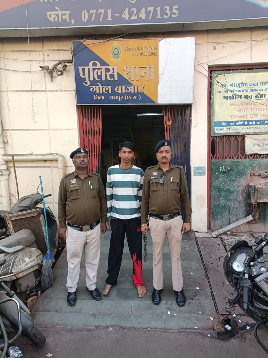 रायपुर: राजधानी की गोलबाजार पुलिस ने क्षेत्र के कुख्यात बदमाश अयान खान (19 वर्ष) के विरुद्ध कड़ा रुख अपनाते हुए उसे गिरफ्तार कर लिया है। आरोपी पर शास्त्री मार्केट में मारपीट और अवैध वसूली (उगाही) के मामले में कार्रवाई की गई है।