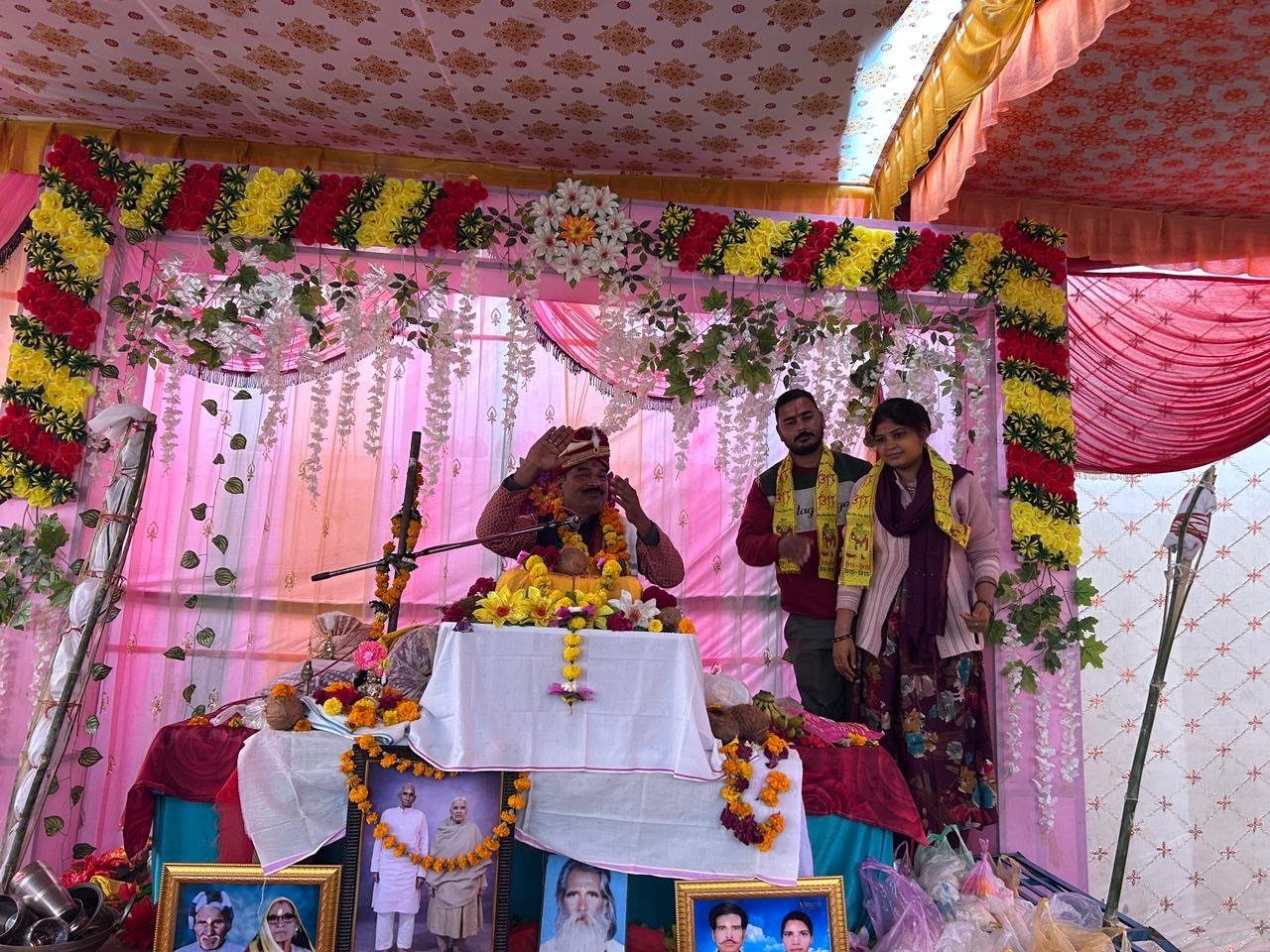 इस पावन आयोजन में श्रीमद् भागवत कथा का मधुर वाचन पं. सुरेश कुमार दुबे शास्त्री द्वारा किया जा रहा है। गुरुवार की कथा में उन्होंने रुक्मिणी विवाह, हरण तथा स्यामंतक मणि की दिव्य कथा का भावपूर्ण वर्णन किया, जिसे सुनकर श्रद्धालु भावविभोर हो उठे।