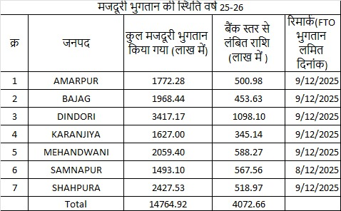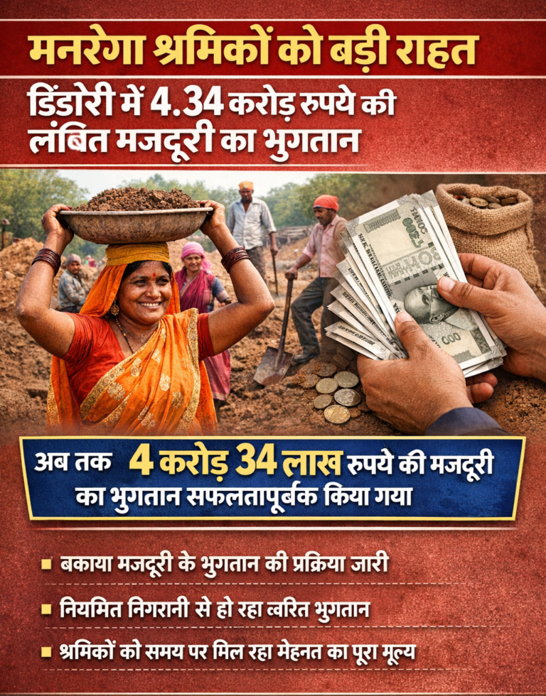 मनरेगा श्रमिकों को बड़ी राहत: डिंडौरी में 4.34 करोड़ रुपये की लंबित मजदूरी का भुगतान