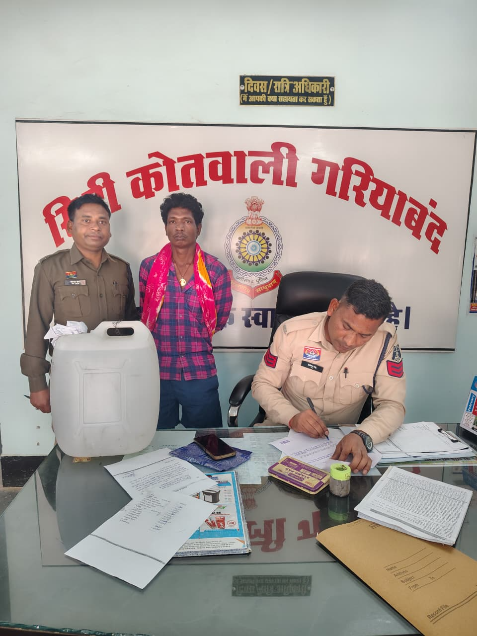 गरियाबंद पुलिस द्वारा 20 लीटर अवैध कच्ची महुआ शराब के साथ आरोपी को किया गया गिरफ्तार।